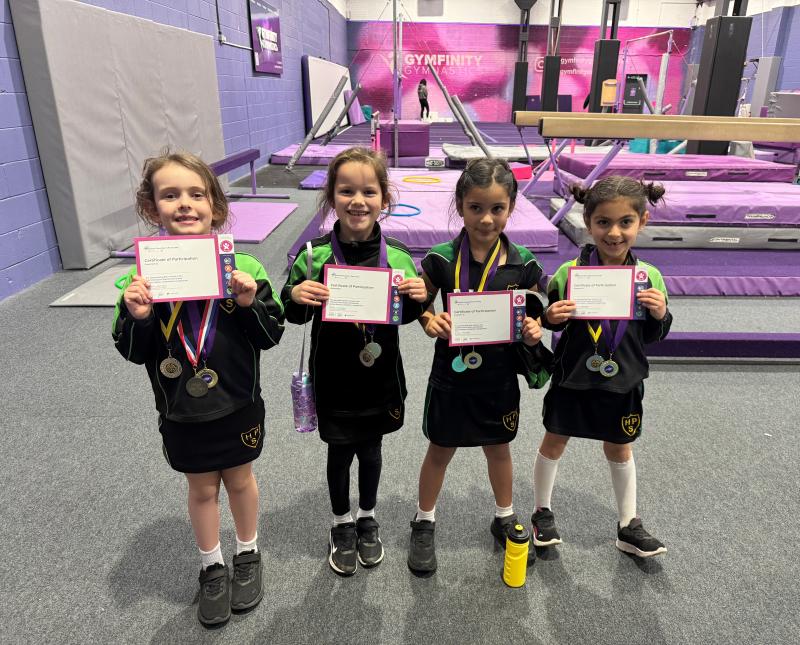 Well done to the Year 2 girls for their excellent performance in the Trafford Schools Gymnastics today. The girls finished second as a team, and Steffi placed 2nd in the individual floor event, a fabulous achievement as 14 schools, comprising 56 Year 2 children, took part in the event.